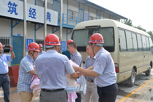 會(huì)前,與會(huì)人員還參觀了由揚(yáng)建承建的七二三所科研樓和參建的新萬福大橋工程,各位領(lǐng)導(dǎo)和專家深入施工一線調(diào)研指導(dǎo),為項(xiàng)目一線施工人員送去防暑慰問品,詢問了解安全生產(chǎn)保障措施并叮囑確保夏季汛期和高溫季節(jié)的施工安全。