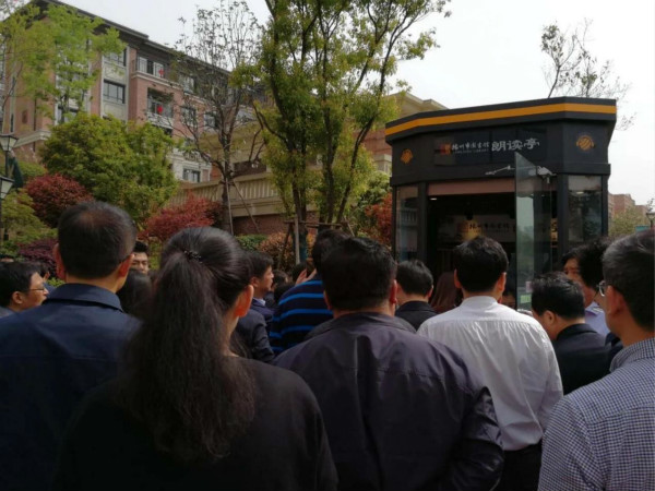 圖書館工作人員首先向?qū)W員介紹了“朗讀亭”的由來意義和使用操作方法,很多學(xué)員饒有興致地體驗(yàn)了一回“朗讀者”,朗誦自己喜愛的詩詞文章,感受朗讀的魅力和文字的力量。隨后進(jìn)入到上院城市書房參觀,整個(gè)書房的裝修風(fēng)格采用了民國風(fēng),墻壁被設(shè)計(jì)成精裝本書籍的樣式,讓人仿佛走進(jìn)書的世界,還特別劃分出了少兒閱讀區(qū)。學(xué)員們時(shí)而激烈探討,時(shí)而拿起手邊書本翻看,為這樣一所老百姓“家門口的城市書房”豐富文化生活交口稱贊。