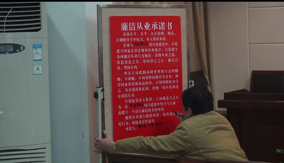 為貫徹落實(shí)習(xí)近平總書記在十八屆中央紀(jì)委二次全會(huì)上的重要講話精神,在春節(jié)即將到來之際,公司紀(jì)委書記錢啟明、紀(jì)委副書記、紀(jì)監(jiān)室主任陳緒寶23日和25日專程到鹽城華建置業(yè)公司、揚(yáng)州華盛置業(yè)公司開展專題廉政警示教育,并送去一批廉政警示掛牌、桌牌。兩個(gè)地產(chǎn)公司全體人員簽署了廉政承諾書,鹽城四家乙方總包單位簽署了廉政響應(yīng)書,甲乙雙方簽訂了廉政合同。