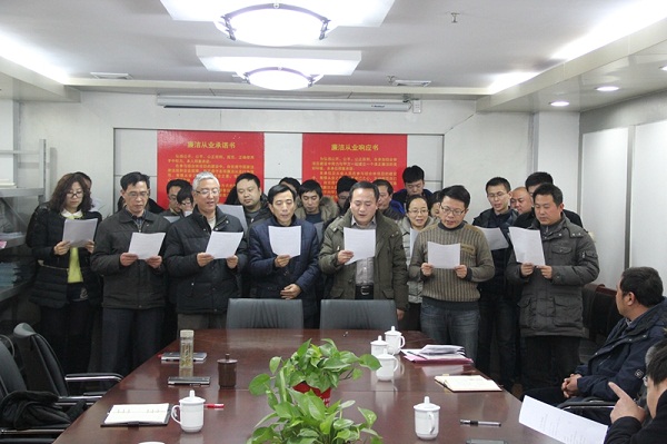 會議由建工控股公司紀委書記錢啟明主持。會上控股公司紀委副書記陳緒寶傳達了省、市有關(guān)廉政建設(shè)的文件精神,帶領(lǐng)地產(chǎn)員工認真學習了中共中央辦公廳、國務院辦公廳近日印發(fā)的《關(guān)于做好2015年元旦春節(jié)期間有關(guān)工作的通知》等文件。錢啟明書記指出:要在地產(chǎn)板塊營造陽光、誠信、廉潔的氛圍,首先要自覺加強學習、提高思想修養(yǎng),樹立正確的人生觀、價值觀;其次要嚴格工作制度、規(guī)范工作程序;第三要堅持嚴肅的懲處違法違紀行為。地產(chǎn)公司董事長程杰最后對全體員工進一步提出四條要求:第一,要牢記自己的身份,時刻保持廉潔自律;第二領(lǐng)導要以身作則;第三要規(guī)范管理體系;第四要走正路、大路,陽光路。