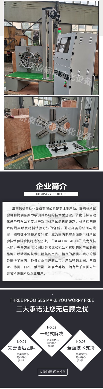 濟南信標自動化設備有限公司主要生產:動靜態萬能疲勞試驗機,接骨板彎曲試驗機,縫合線拉伸疲勞試驗機,髖膝關節磨損試驗機,電子萬能試驗機、液壓萬能試驗機、巖石三軸、四軸,電液拉力試驗機,材料試驗機,高低溫蠕變,高低頻疲勞,拉伸、扭轉、杯突等二十多個系列兩千多個的品種。