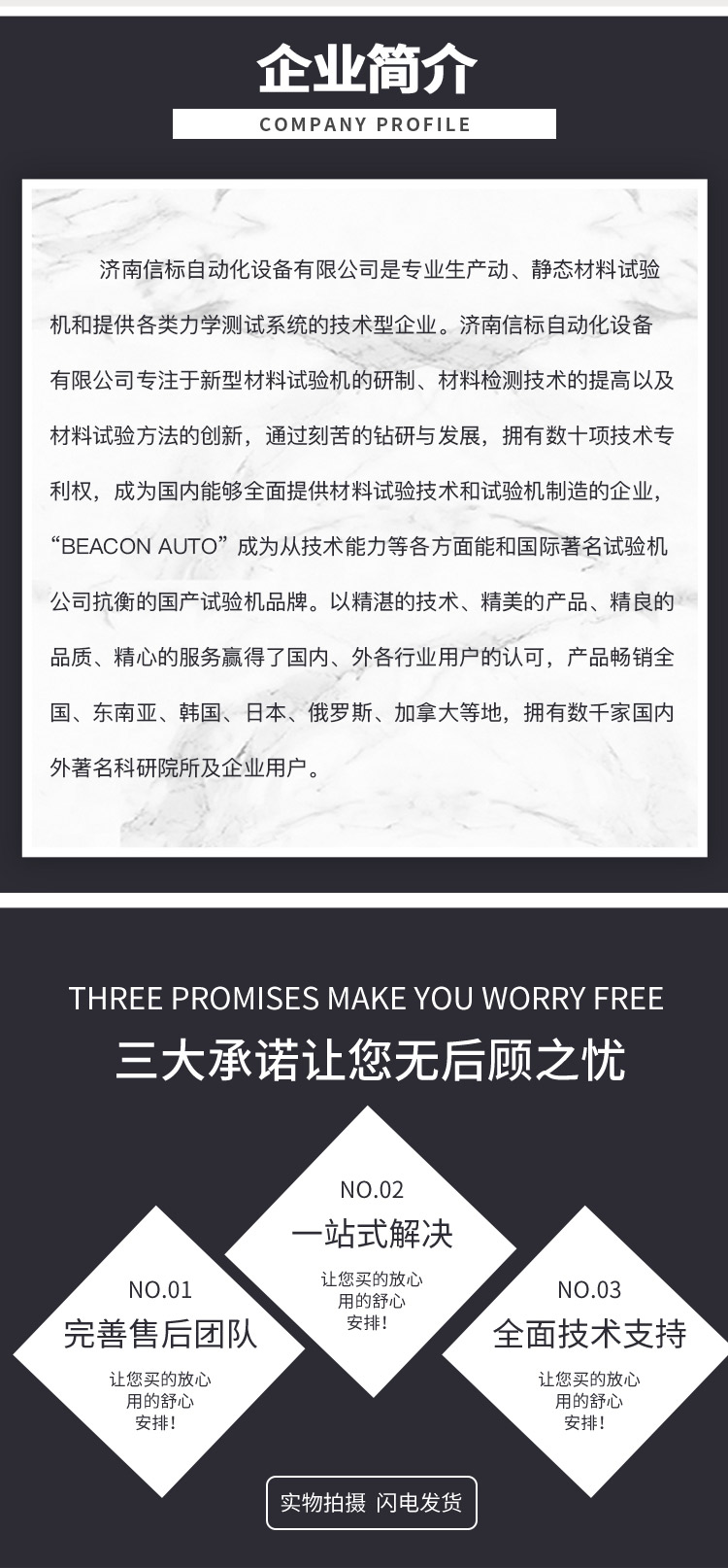 濟南信標自動化設(shè)備有限公司主要生產(chǎn):動靜態(tài)萬能疲勞試驗機,接骨板彎曲試驗機,縫合線拉伸疲勞試驗機,髖膝關(guān)節(jié)磨損試驗機,電子萬能試驗機、液壓萬能試驗機、巖石三軸、四軸,電液拉力試驗機,材料試驗機,高低溫蠕變,高低頻疲勞,拉伸、扭轉(zhuǎn)、杯突等二十多個系列兩千多個的品種。 |