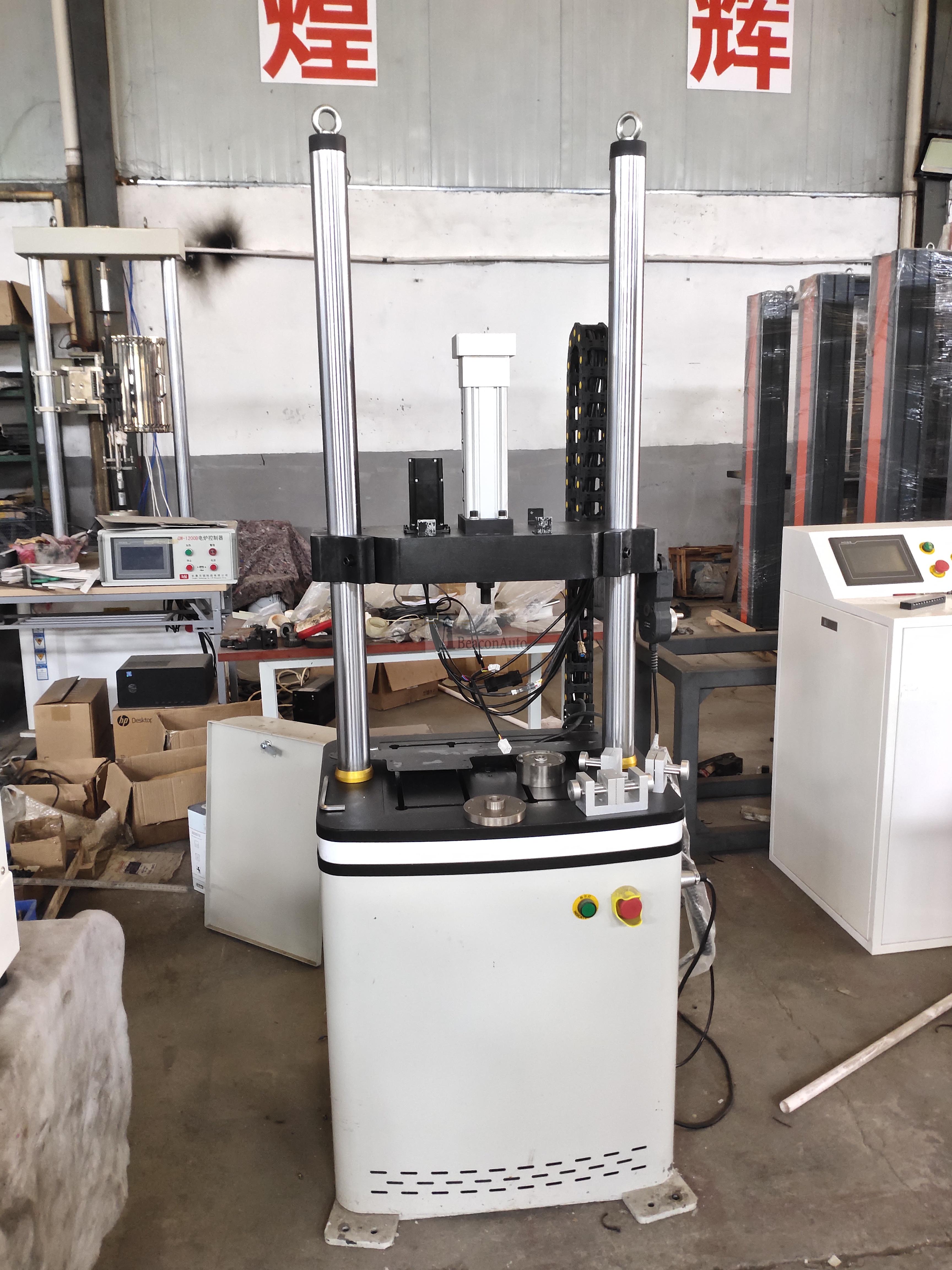 PWS電子式動(dòng)靜態(tài)試驗(yàn)機(jī) 產(chǎn)品簡(jiǎn)介:電子式動(dòng)靜態(tài)試驗(yàn)機(jī)主要由一臺(tái)主機(jī)、全數(shù)字單通道伺服控制器以及計(jì)算機(jī)打印機(jī)、相關(guān)試驗(yàn)軟件、其它必要的附件等組成。 電子式動(dòng)靜態(tài)試驗(yàn)機(jī)產(chǎn)品特點(diǎn): 主機(jī):(輔助實(shí)驗(yàn)夾具以客戶(hù)要求為準(zhǔn)) 主機(jī)為雙立柱框架式結(jié)構(gòu), 伺服直線(xiàn)作動(dòng)器下置于主機(jī)框架上部。夾頭分別安裝在橫梁和作動(dòng)器活塞桿頂端。主機(jī)橫梁調(diào)整采用電動(dòng)絲杠升降,傳動(dòng)單元隱藏在橫梁內(nèi)部,外觀(guān)整潔,主機(jī)下部工作臺(tái)為分體式,不需要刻意拆掉,整機(jī)防止在客戶(hù)Z定的臺(tái)面上。手動(dòng)夾緊、彈性松開(kāi)式結(jié)構(gòu),保證試驗(yàn)過(guò)程中橫梁穩(wěn)固可靠,同時(shí)保證在非試驗(yàn)狀態(tài)時(shí)橫梁保持鎖止不動(dòng)。立柱外表面采用電鍍硬鉻處理,可有效增加立柱抗磨損能力,提高防腐蝕能力,同時(shí)增加主機(jī)外形的美觀(guān)程度。 試驗(yàn)機(jī)主機(jī)具有結(jié)構(gòu)緊湊、橫梁升降自如、機(jī)架剛度高、試件夾持可靠、對(duì)中性好、裝夾方便等特點(diǎn),并可配備各種夾具和環(huán)境試驗(yàn)裝置以擴(kuò)展試驗(yàn)功能。